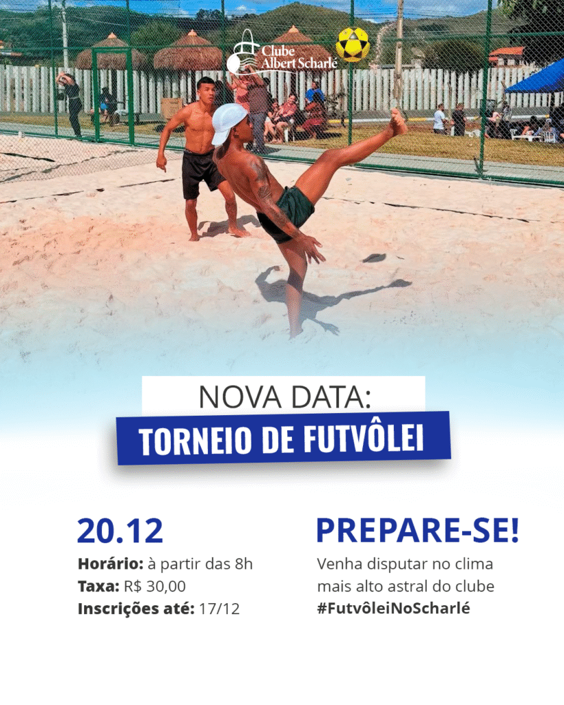 Heart Jki-star-1-light Share-alt agencialogan 15 de novembro de 2025 Eventos,Eventos especiais,Notícias [Nova data] Torneio de Beach Tênis do Clube Scharlé ⚡ ⚽️Torneio de Futvôlei comNOVA DATA! A areia já está preparada, falta só você entrar emcampo! 🔥🌞 Areia, sol, amigos e muita competição saudável! Chegou a vez do nosso Torneio de Futvôlei, um dosesportes mais vibrantes das […]