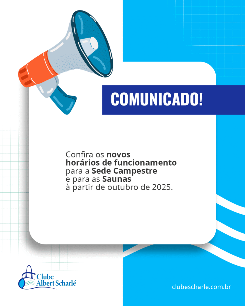 Heart Jki-star-1-light Share-alt 📢 Comunicado Importante – Funcionamento da Secretaria no dia do Baile Clube Albert Scharlé 22 de agosto de 2025 Comunicado 📢 Comunicado Importante Em celebração ao Baile de 66 anos do Clube Albert Scharlé, neste sábado, 20 de setembro, a Secretaria funcionará das 08h às 14h. A venda de convites do baile […]